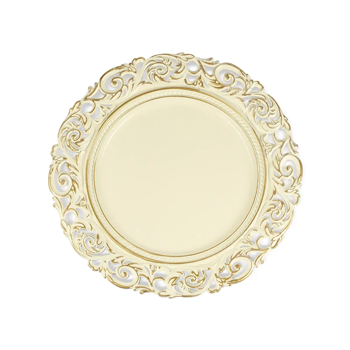שישיית פלייסמנטים עגולים בצבע זהב דגם ויקטוריה עם עיטוריםגודל: 33.5 ס"מ